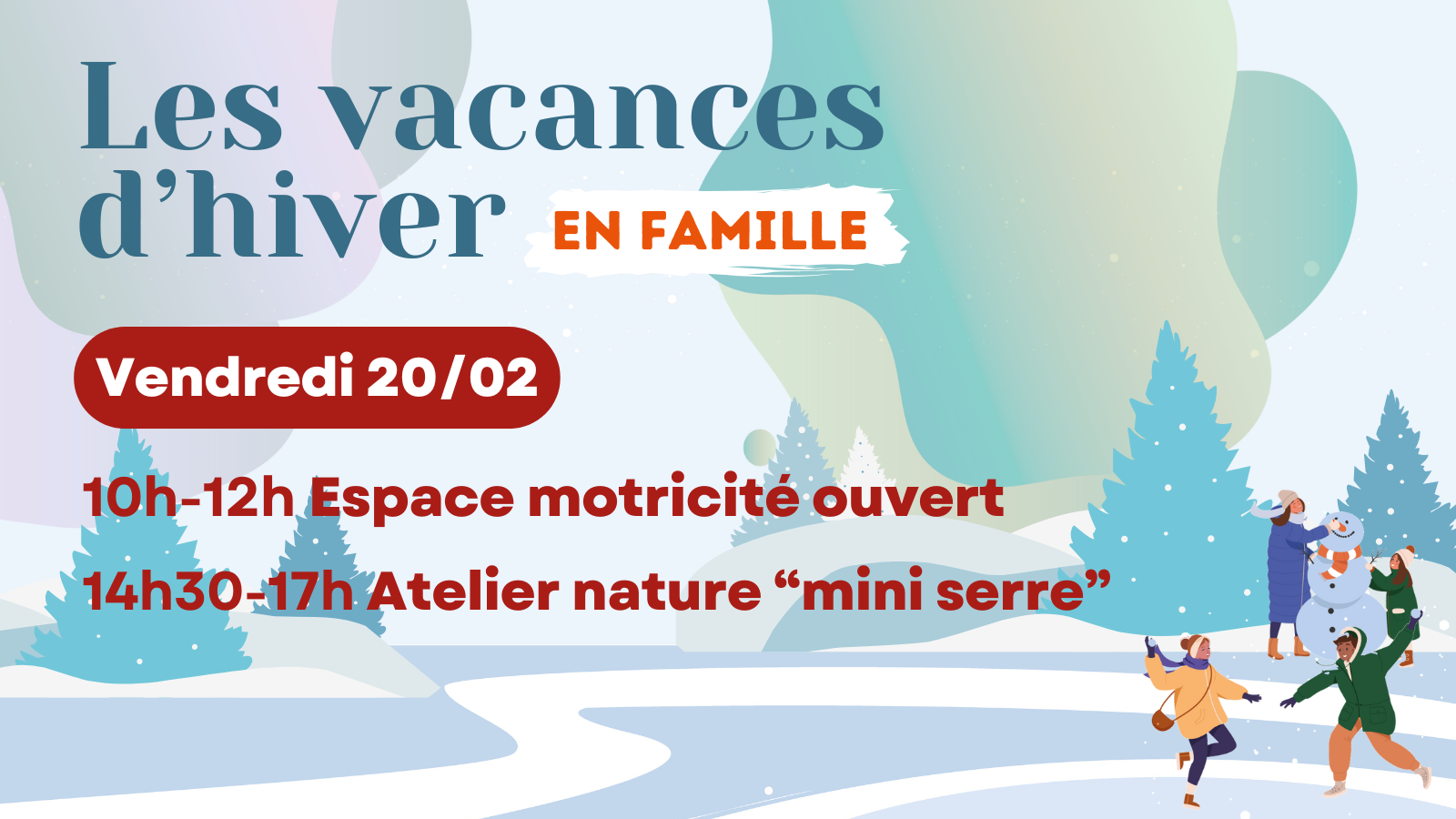 Venez jouer dans notre espace de motricité dédié aux tout-petits. Il leur permettra de bouger, sauter, jouer ensemble, de s’exprimer grâce à leur corps ! - Atelier nature « mini serre » à la MdH de 14h30 à 17h, à partir de 5 ans. Adhésion nécessaire, gratuit, sur inscription.