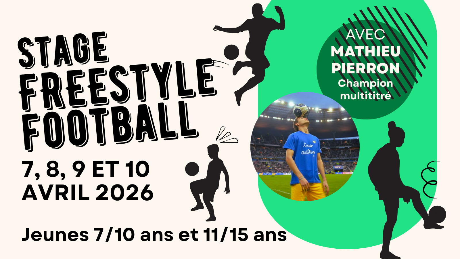 Du mardi 7 au vendredi 10 avril, le champion Mathieu Pierron (3e Mondial en Show Duo, 2 fois Vice Champion de France, vainqueur dans des compétitions internationales,…) te transmettra sa passion et ses techniques.